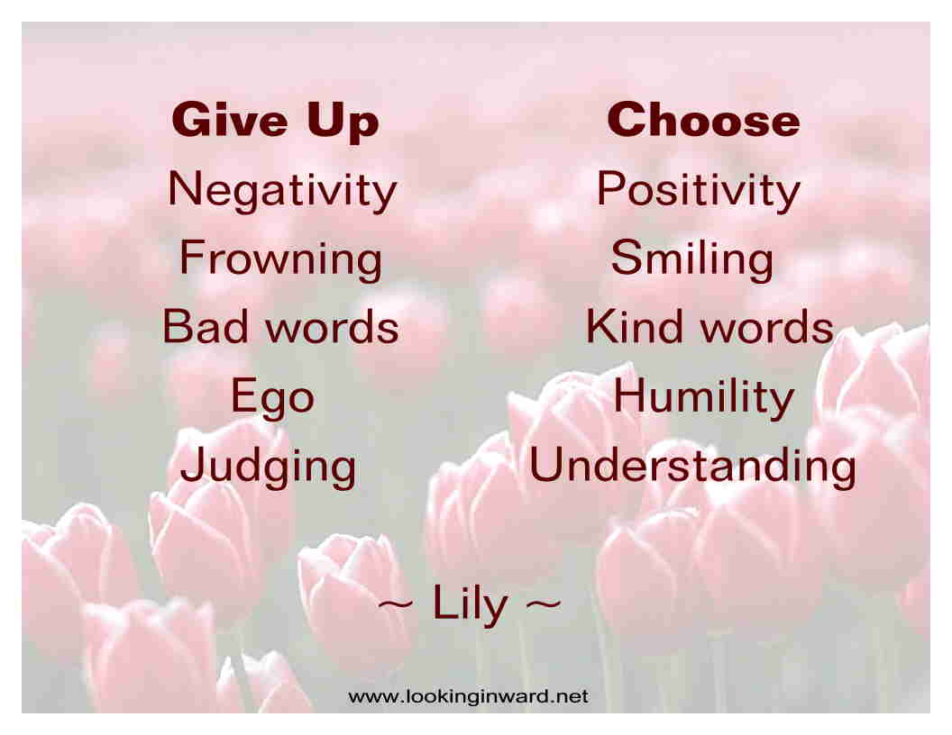 Look Inward, Listen to your Heart, be Positive, be Kind, be Humble, Live Life to the Fullest