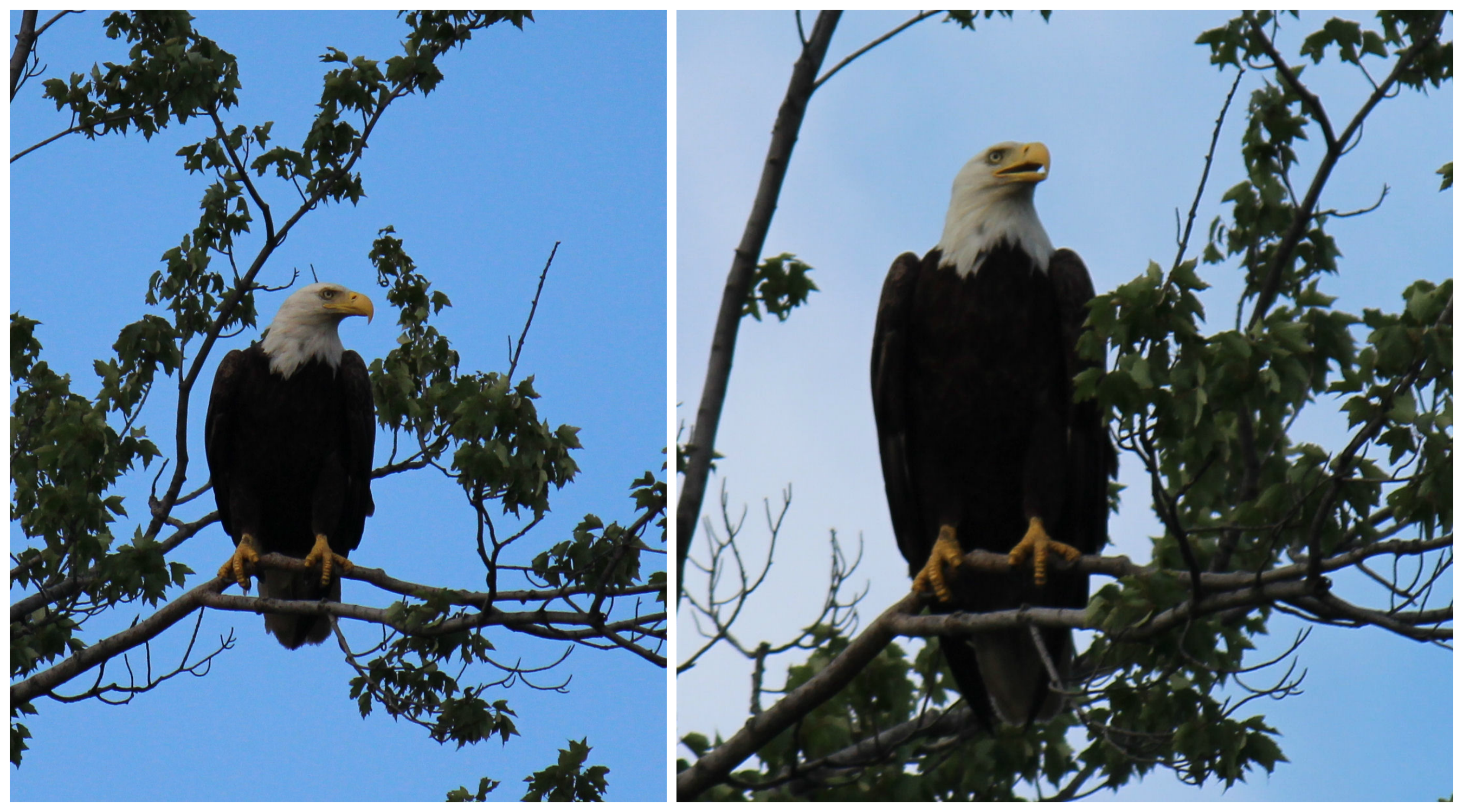 Later in the evening my husband and I took our boys out in the rowboat fishing. About half way out and in an area called “the point” we got a clear view of one of the eagles resting high on an elevated tree branch. The eagle was not alarmed by our presence as it has probably gotten used to the boats that cross the lake daily. As I was taking pictures of the eagle I couldn’t help but think how beautiful this bird was and how fitting it was to see the eagle at the same time America was celebrating the anniversary of its Independence. It almost felt magical to see the eagle and be on the lake with my family all at once. It seemed like a perfect moment in time and I soaked in every second. There are moments in our lives that come and go but this is one I will always remember!